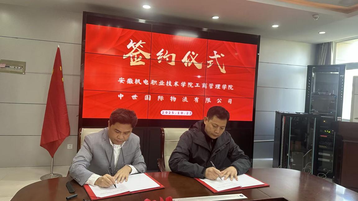 随后,在热烈的掌声中,中世国际物流有限公司有限公司与工商管理学院正式签订校企合作协议。双方将在人才培养、师资队伍建设、企业员工学历提升、学生实习就业等方面展开深入合作。