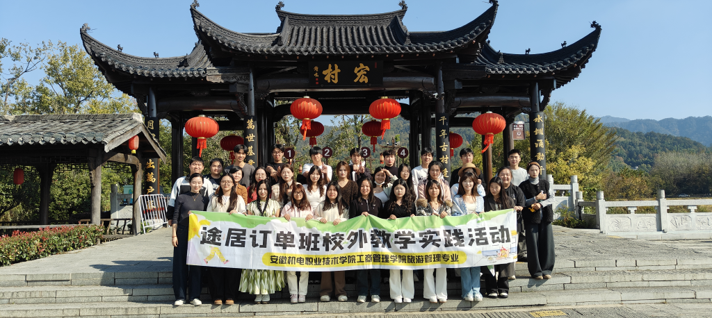 11月14日,订单班学生赴导游资格证考试景点西递和宏村进行实地讲解,学生以景区游客为讲解对象,结合专业知识进行现场讲解;在旅途中,学生们分组设计趣味互动环节和才艺展示,模拟带领游客开展营地周边研学、户外团建等活动,有效锻炼了活动策划与现场把控能力。整个实践过程中,学生们积极参与、主动思考,将课堂所学转化为实际操作能力,展现了良好的专业素养与学习潜力。