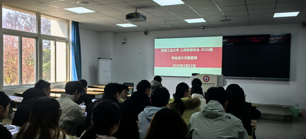 为切实提升我院2024级工商管理专业(本科)学生培养质量,严格规范学位论文撰写,工商管理学院根据安徽工业大学的相关要求,于2026年3月22日在3201、3203教室举行2024级工商管理专业本科生毕业论文开题答辩会。参加本次开题工作的有工商管理学院毕业论文指导教师何赟副教授、王云霞副教授、吕凯副教授、吴红迪副教授、孙晴副教授,专业负责人钱烨副教授;2024级工商管理专业全体本科生参加了本次开题答辩。